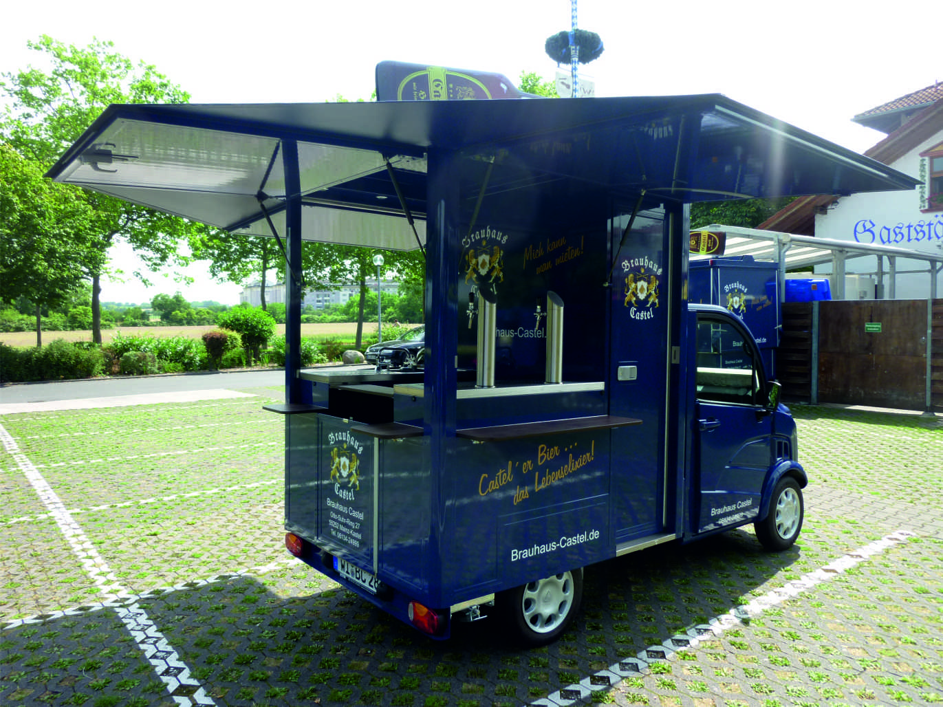 - Maße fahrbereit: ca 3.753 x 1.550 x 2.500 mm + 20 cm Befestigung für das aufstellbare Display (Bierflasche)