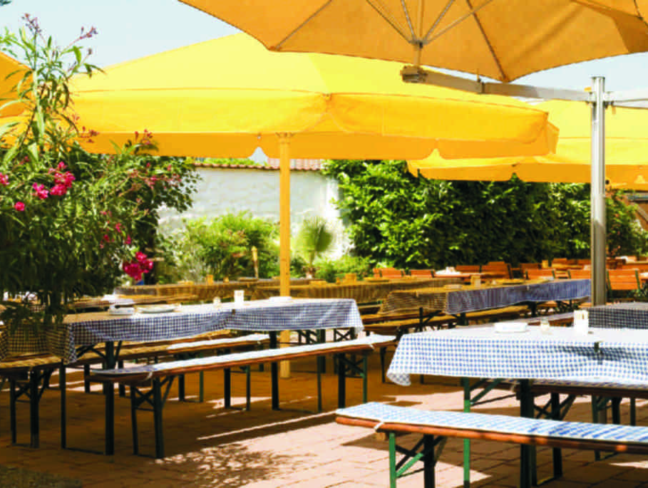 In good weather there is a wonderful holiday feeling that is absolutely relaxing. There is room for up to 250 people under the large parasols, very rustic on beer benches or comfortably on wooden chairs.